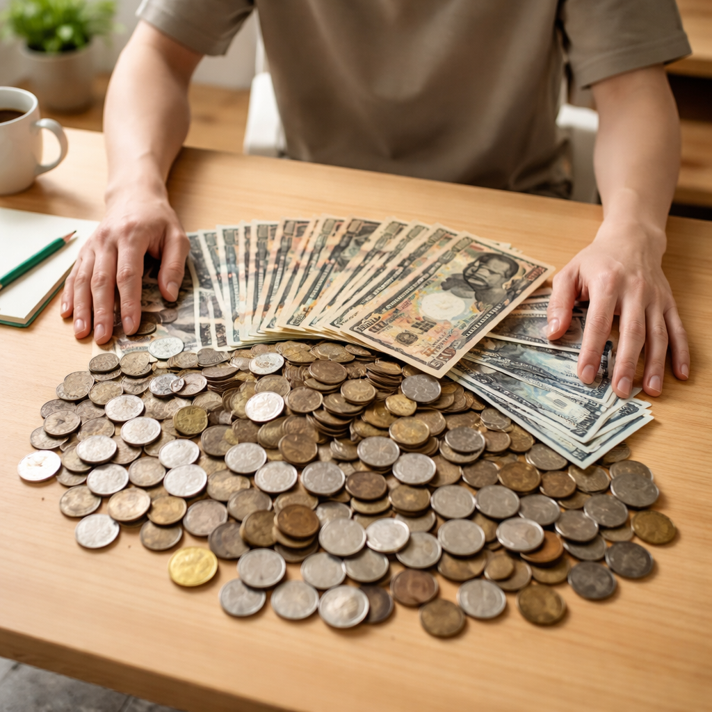 その時ふと、小銭をたくさん入れていたジップロックの存在を思い出した。 開けてみると、そこにお金があった。「あれ?そういえば…」と思い、本棚の箱を開けてみた。